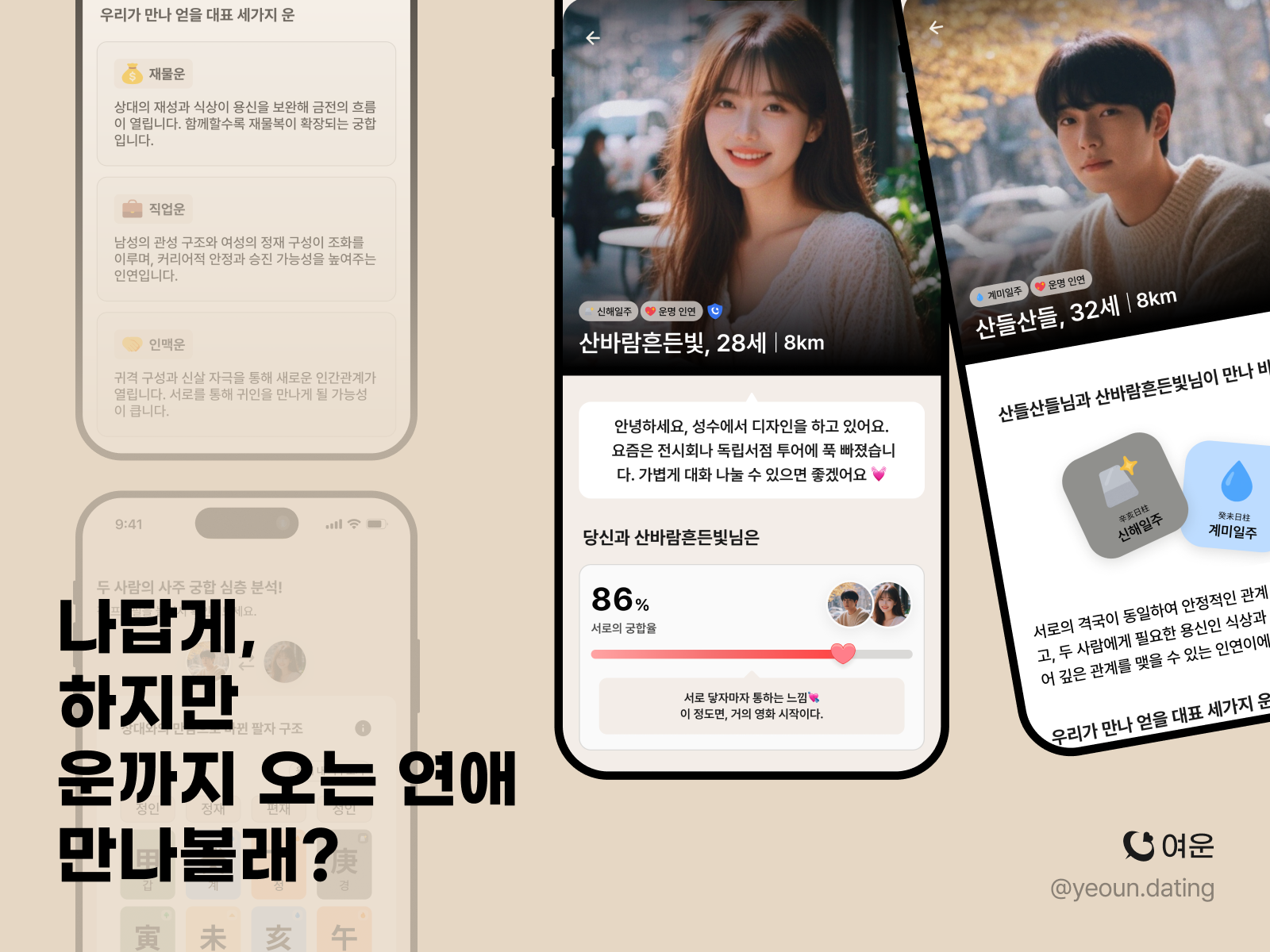 사주 궁합 소개팅 앱 ‘여운’이 함께하니까요. ✨